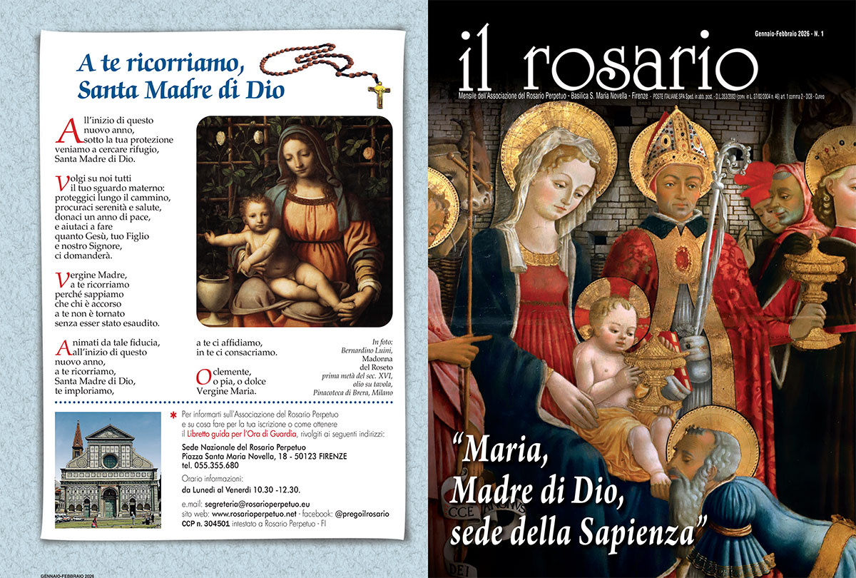 Un nuovo anno quindi come nuova opportunità per condurre questa battaglia con la spada del Rosario, che conduce a vittoria grazie alla forza redentrice dei misteri della Vita, Passione, Morte e Risurrezione del Signore nostro Gesù Cristo, contemplati con Maria, mistica aurora della Redenzione. La ripetizione litanica del saluto angelico, che ha preceduto il mistero dell'Incarnazione redentrice, oltre che costituirne lo spazio per l'assimilazione dei misteri, ha una forza in sé derivante dalle parole del più eccelso annunciatore e messaggero di Dio. Esso si rivolge alla Vergine di Nazaret con le parole che la chiesa ha fatto sue, unendole alle parole evangeliche di Elisabetta e a quelle che sono state aggiunte per invocare l'intercessione potente di Maria nell'ora presente e in quella della nostra morte.